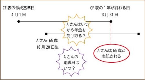 実際の年齢とCF表の年齢は少し違う!! キャッシュフロー(CF)表を作成するとき、その人の年齢が何歳なのかは意識しておくべき問題です。CF表の年齢の表示にはルールがあり、キャッシュフロー表上の1年の終わりの日の年齢が、CF表に表示される年齢ということ…